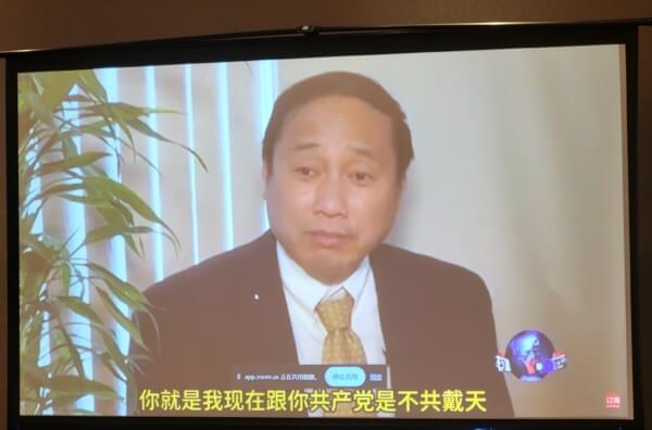 2025年9月9日,中國民營企業家權益保障聯盟舉辦新紀元新聞會,宣布王軍濤出任首席監護人。圖為採訪王軍濤視頻。(邱晨/大紀元)