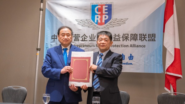 【看中國2025年9月10日訊】(看中國記者孟浩報導)9月9日,中國民營企業家權益保障聯盟(簡稱CERP)於加拿大卑詩省列治文市舉辦新聞發布會,宣布民運領袖王军涛入聯盟,擔任首席監護官。這一任命標誌著海外中國民主力量與民營企業家的深度融合,被視為中國政治轉型的重要里程碑。